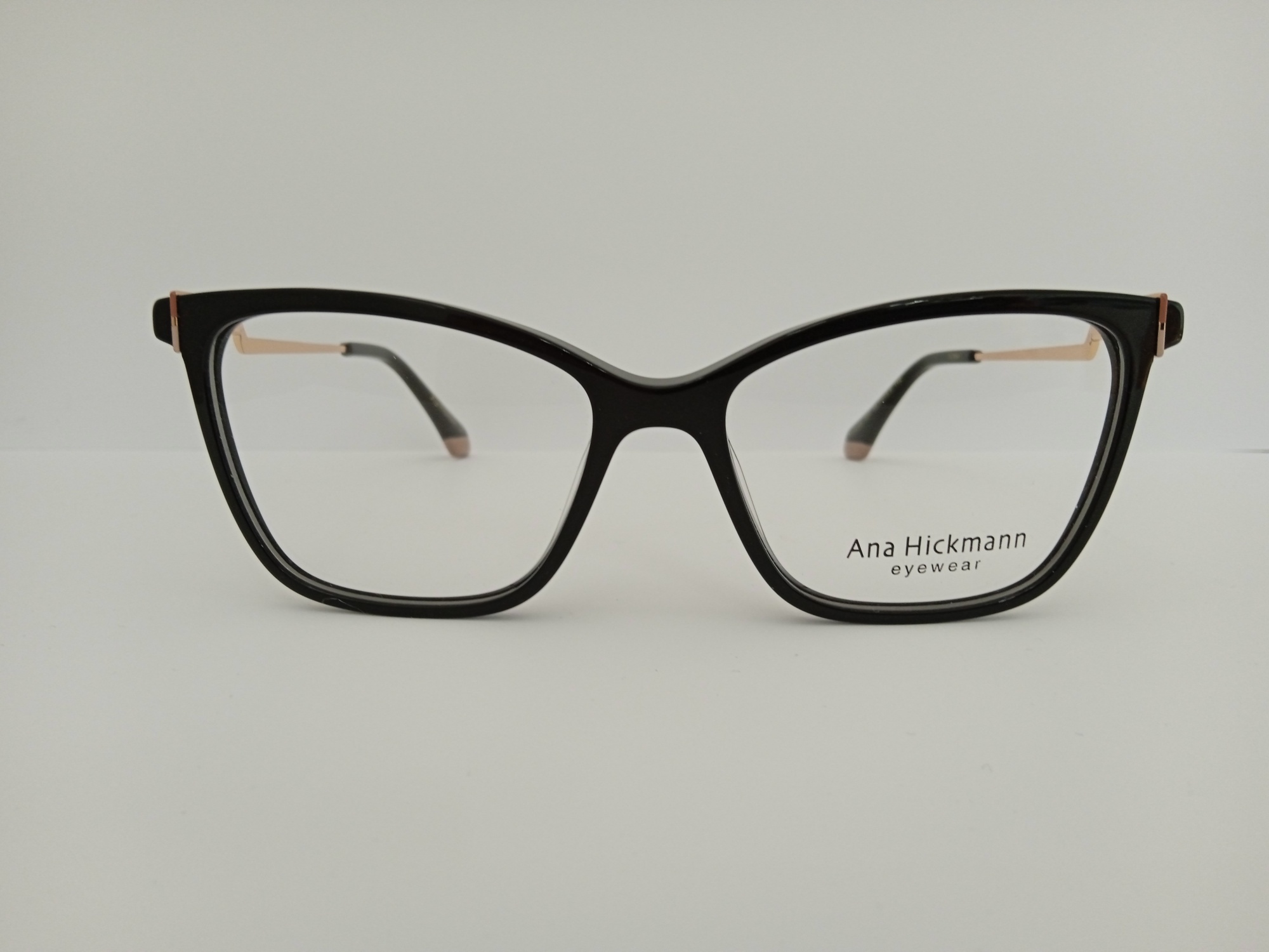 Ana Hickmann- brazylijska supermodelka, która pracowała dla największych domów mody promuje własną linię odzieży i akcesoriów, w skład której wchodzą również okulary. Stanowią one synonim sukcesu, zmysłowości i piękna. Ponadto każdą oprawę można z czystym sumieniem określić mianem niesamowicie stylowej. Całość cechuje dbałość o najdrobniejsze szczegóły a eleganckie wykończenie detali podkreśla ekskluzywny charakter produktów. Wyjątkowa oprawa AH 6436 A01 zaprojektowana dla kobiet ceniących sobie modny wygląd, który urzeknie innych. Oprawka wykonana z tworzywa sztucznego najwyższej jakości w kolorze czarnym ze złotymi zausznikami.