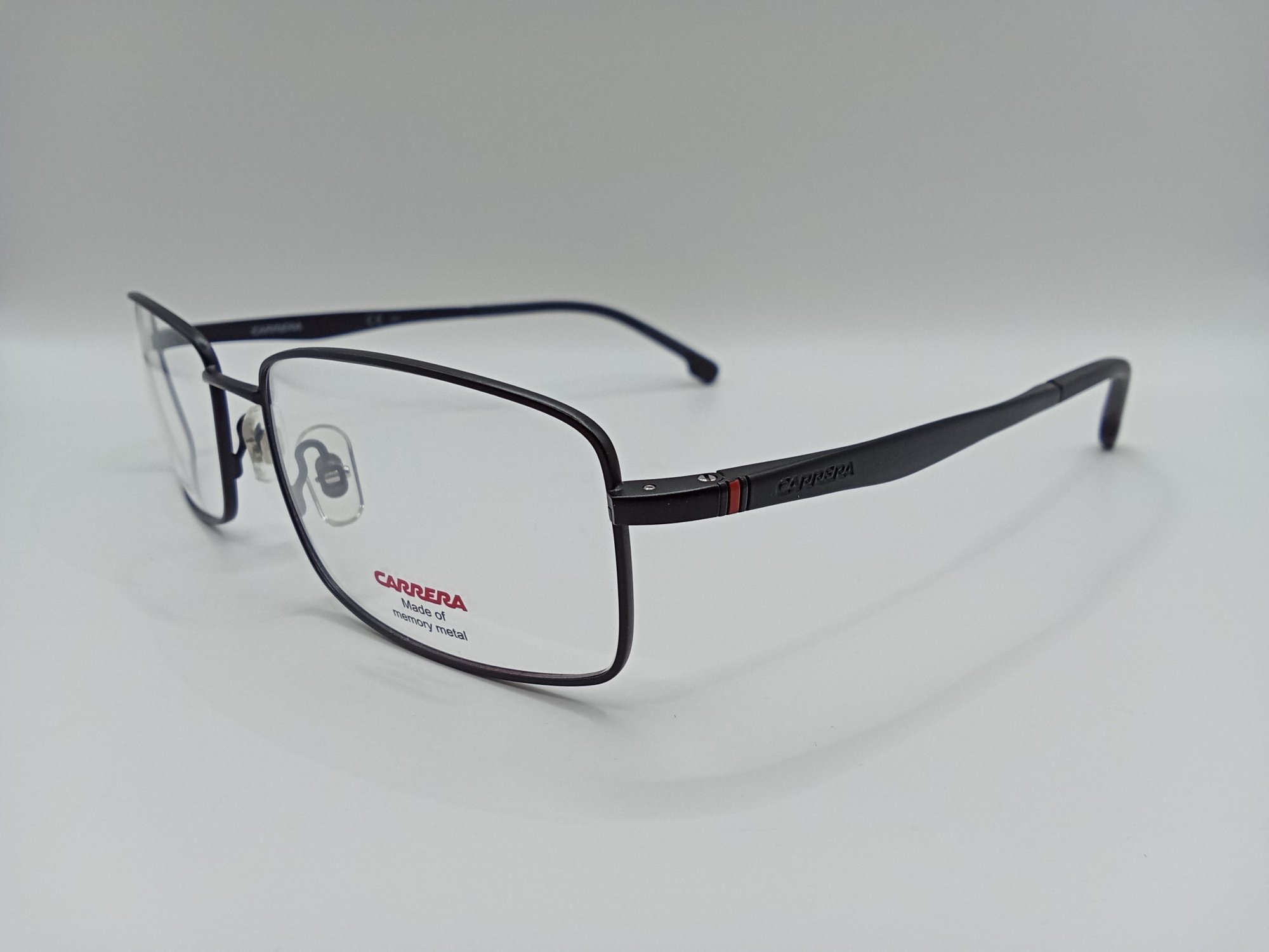 Oprawa CARRERA 8855 003 ma klasyczny, prostokątny kształt. Wykonano ją z wysokiej jakości metalu, dzięki czemu jest wygodna i wytrzymała. Pełna oprawka w czarnym kolorze. Idealnie sprawdzi się w różnych stylizacjach.