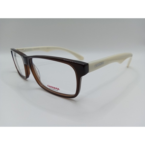 Oprawka CARRERA CA6605 BEI charakteryzuje się wysoką jakością wykonania oraz wygodą podczas użytkowania. Plastikowa o prostokątnym kształcie. Front w brązowym kolorze, natomiast zauszniki o jasnej, waniliowej barwie.