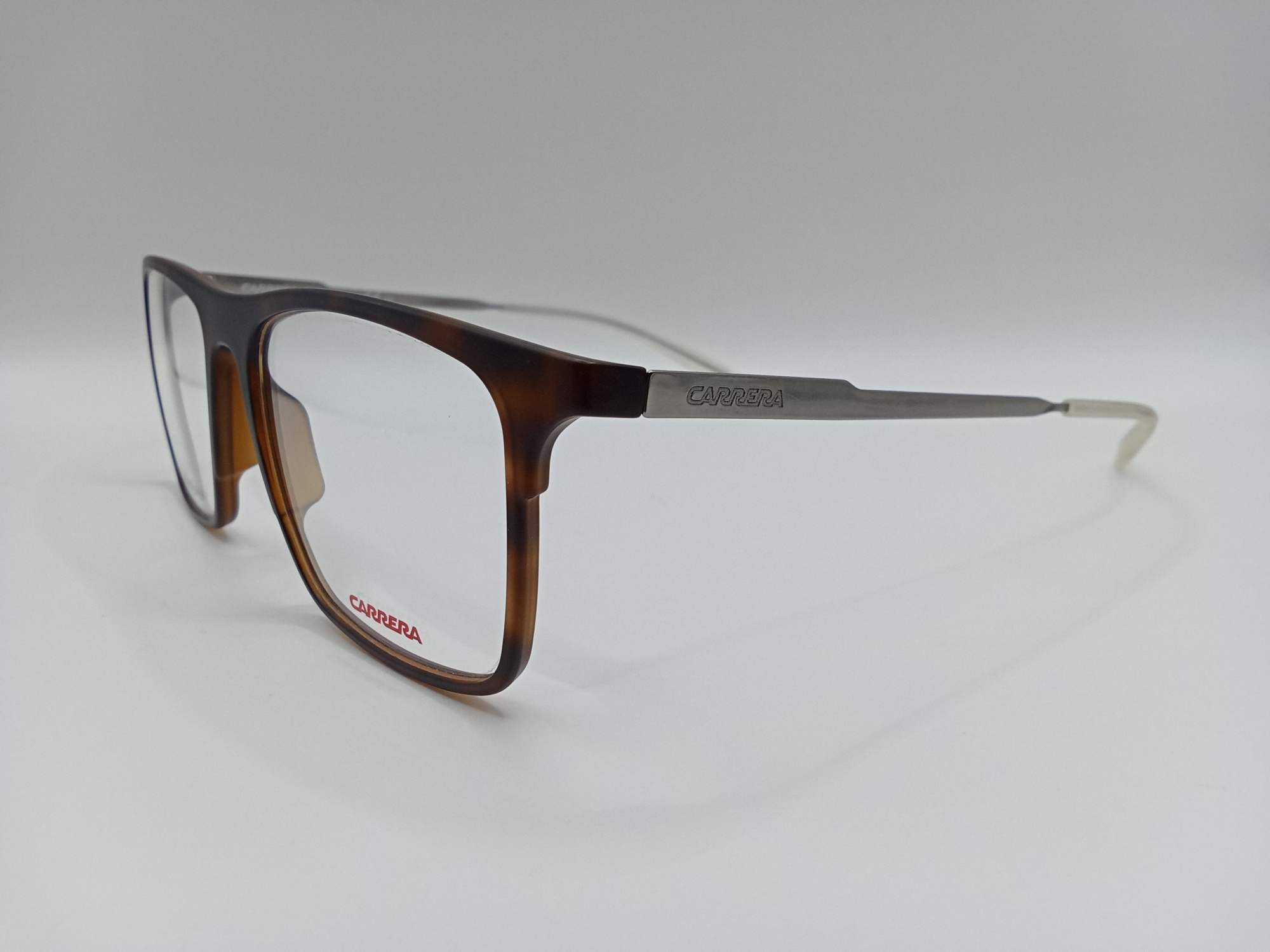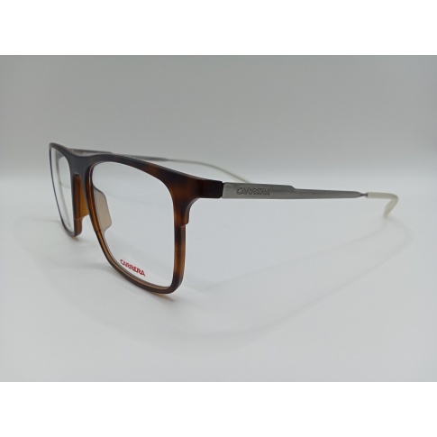 Oprawka korekcyjna CARRERA CA6667 R8Q ma prostokątny kształt. Plastikowy front w matowym, szylkretowym kolorze, a metalowe zauszniki w srebrnym. Wygodna i trwała oprawa wykonana z wysokiej jakości materiałów.