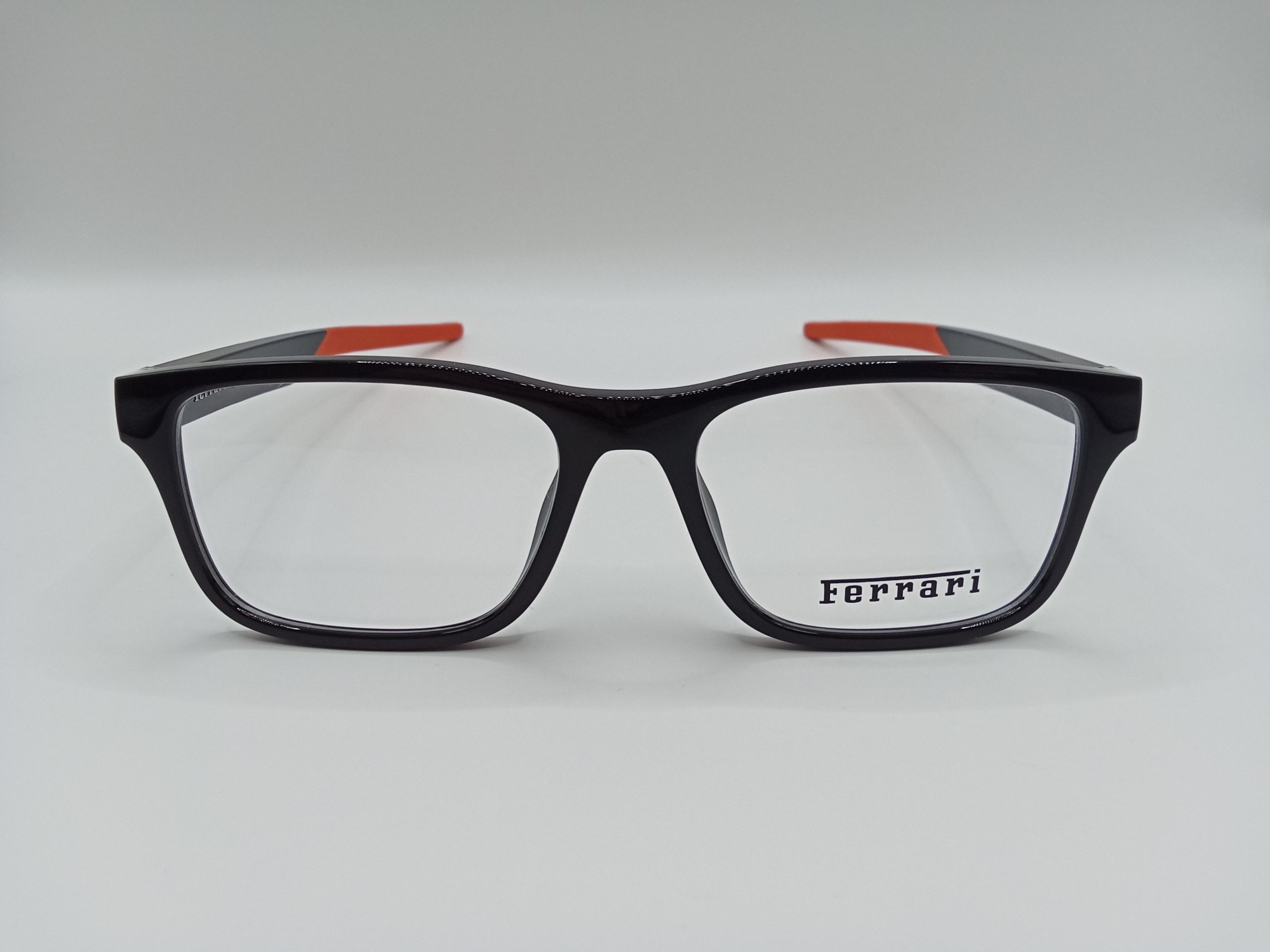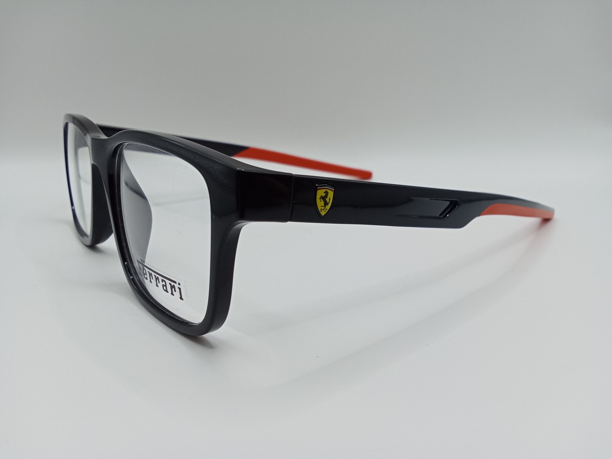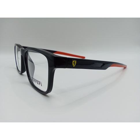 Oprawa korekcyjna Ferrari FZ 8003U 501 jest wykonana z wysokiej jakości tworzywa. Ma prostokątny kształt. Czarna w połysku z czerwonymi wstawkami na zausznikach.