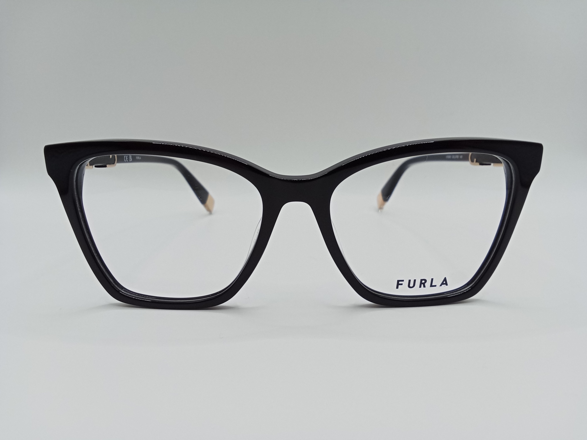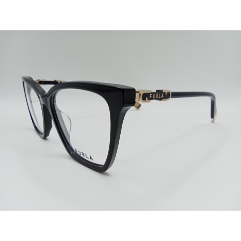 Oprawa korekcyjna Furla VFU833 COL. 0700 ma koci kształt. Pełna, wykonana z najwyższej jakości plastiku w kolorze czarnym w połysku.