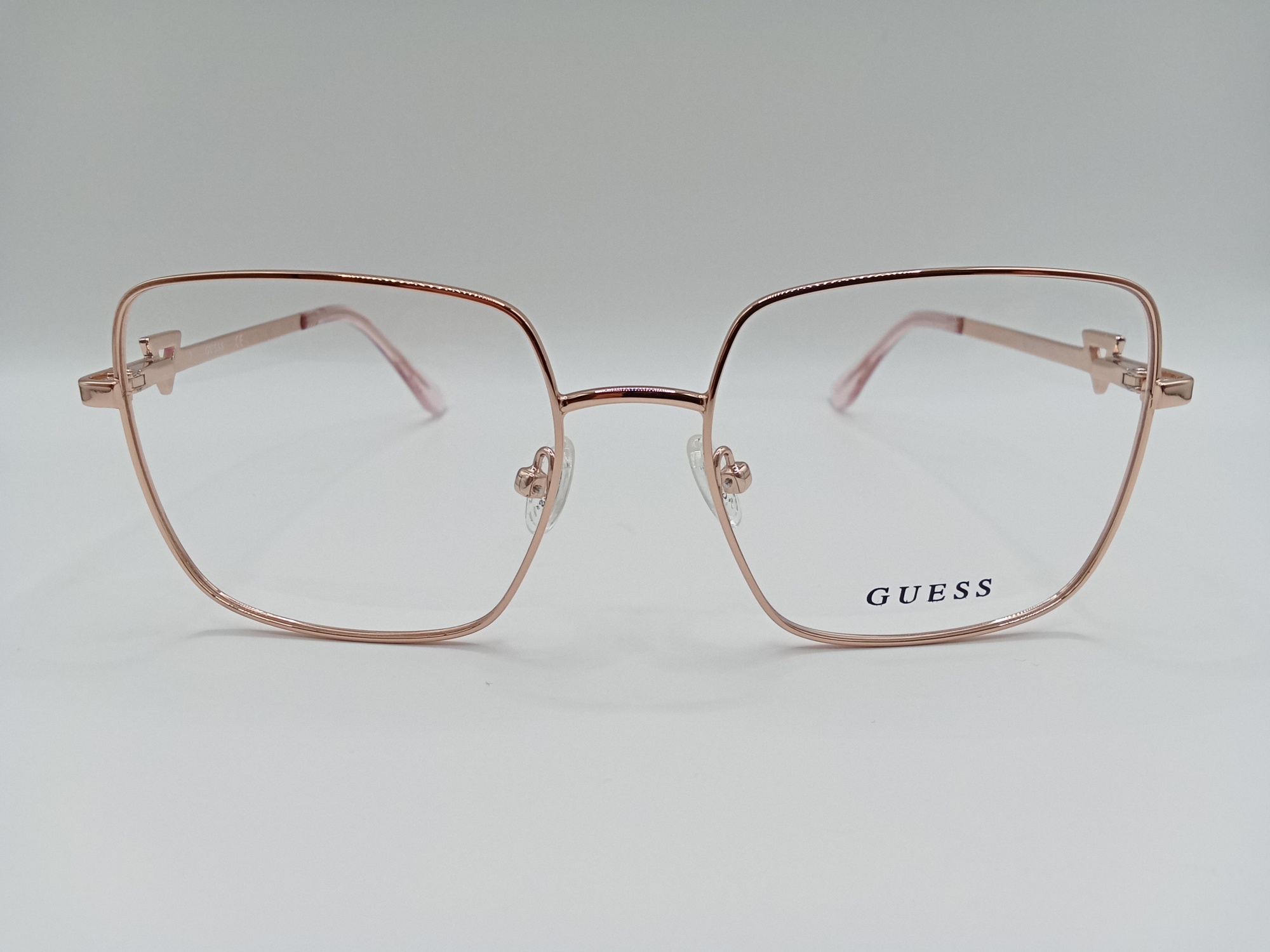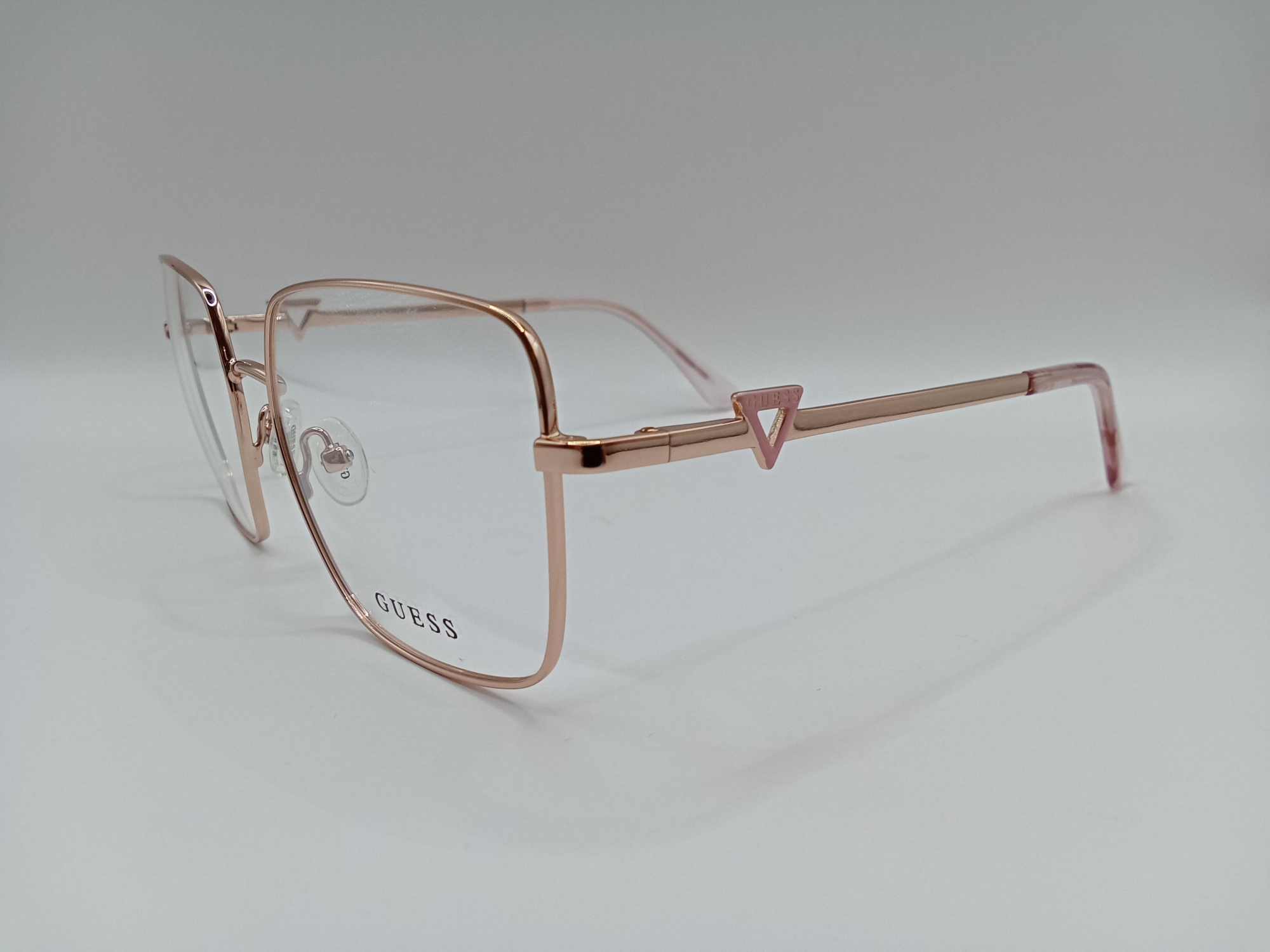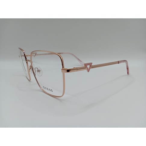 Oprawa korekcyjna Guess GU2728 028 ma kwadratowy kształt, który idealnie sprawdzi się u osób o okrągłej i owalnej twarzy. Pełna oprawka w kolorze różowego złota.