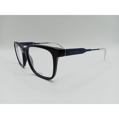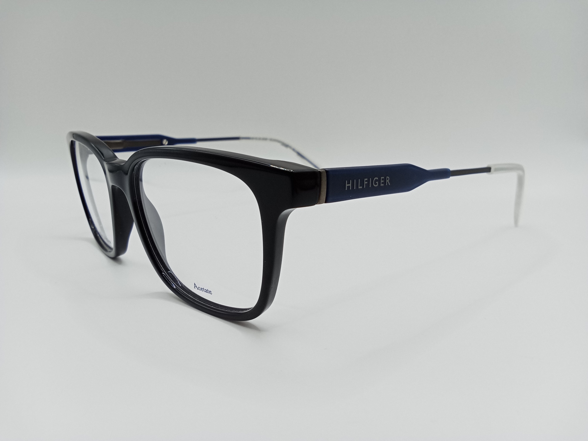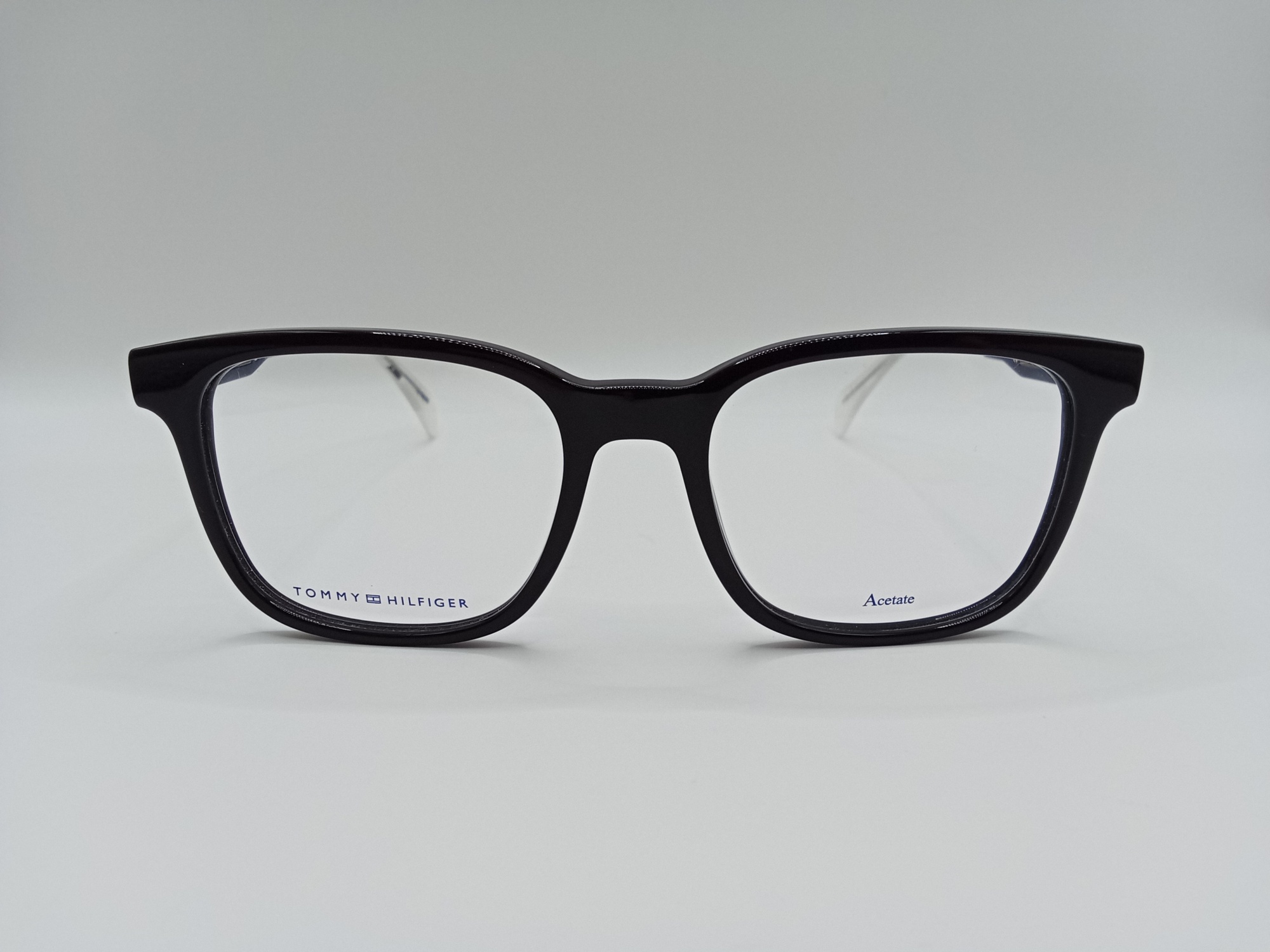 TH 1351 JW9. Popularny model oprawy korekcyjnej cenionej renomowanej marki Tommy Hilfiger, która swym niezwykle oryginalnym wyglądem znajdzie uznanie w oczach każdej osoby chcącej wyglądać nowocześnie, zaprojektowana dla wszystkich ceniących sobie modny styl, ale również wyjątkową wygodę wynikającą z perfekcyjnie wykonanych okularów o dość uniwersalnych rozmiarach. Całość wykonana z najwyższej jakości tworzywa sztucznego w bardzo modnych kolorach czerni, granatu i transparentnym w odcieniu bieli. Front połączony z zausznikami najwyższej jakości mechanizmem łączeniowym typu flex przez co okulary dopasowują się do twojej twarzy.