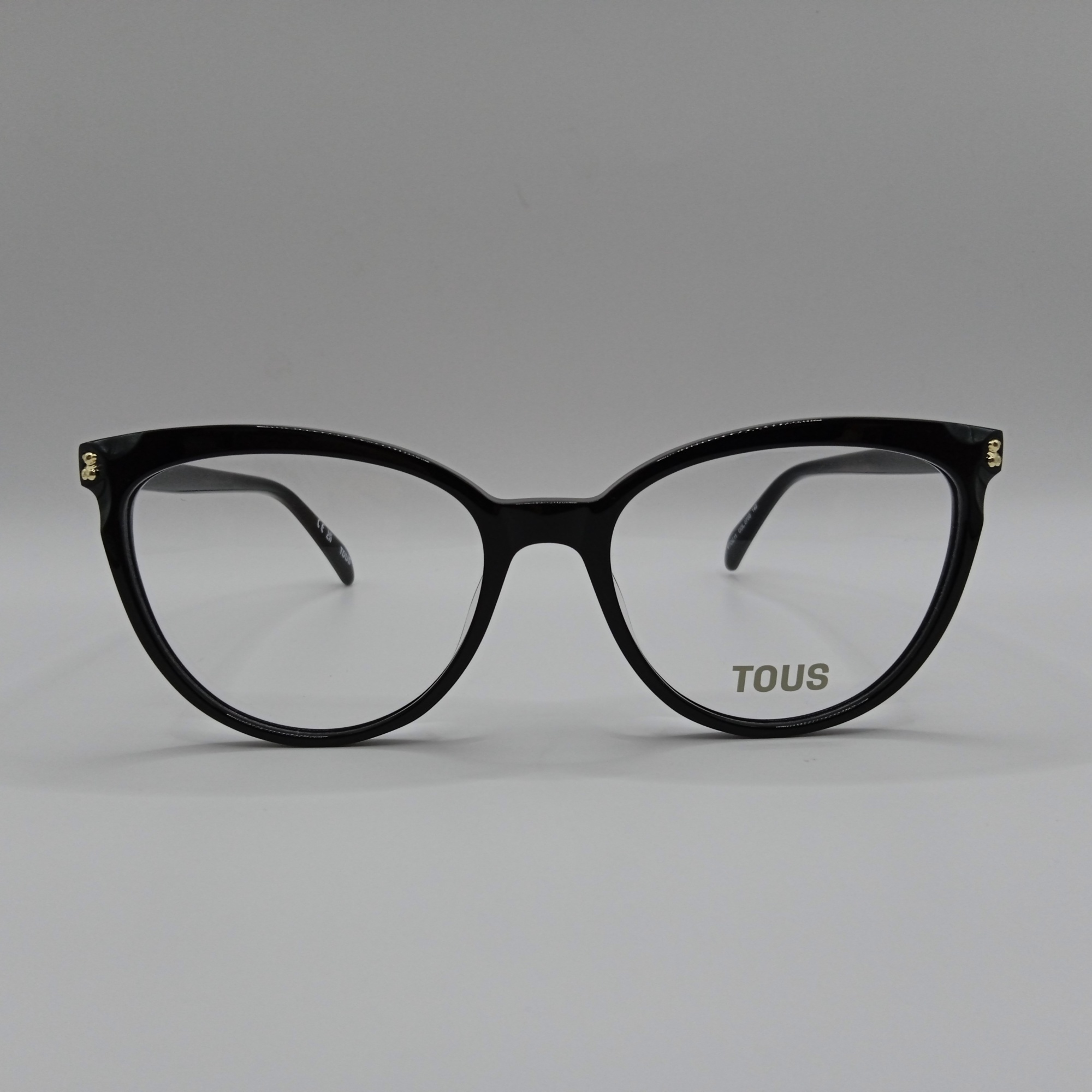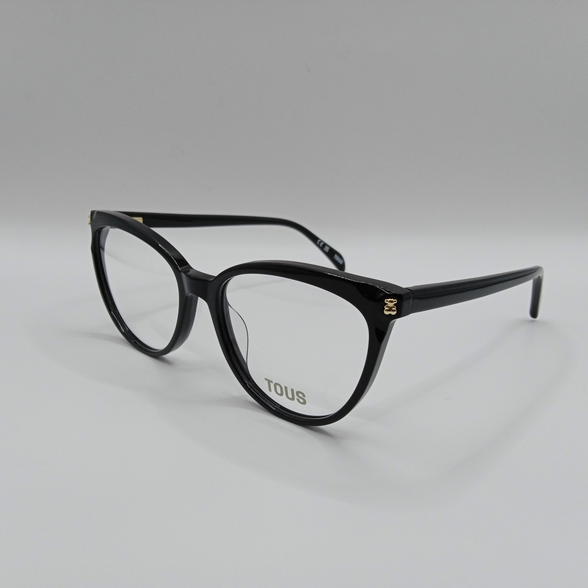 Oprawka korekcyjna Tous VTOC11 jest koloru czarnego w połysku. Plastikowa oprawa o delikatnie kocim kształcie.