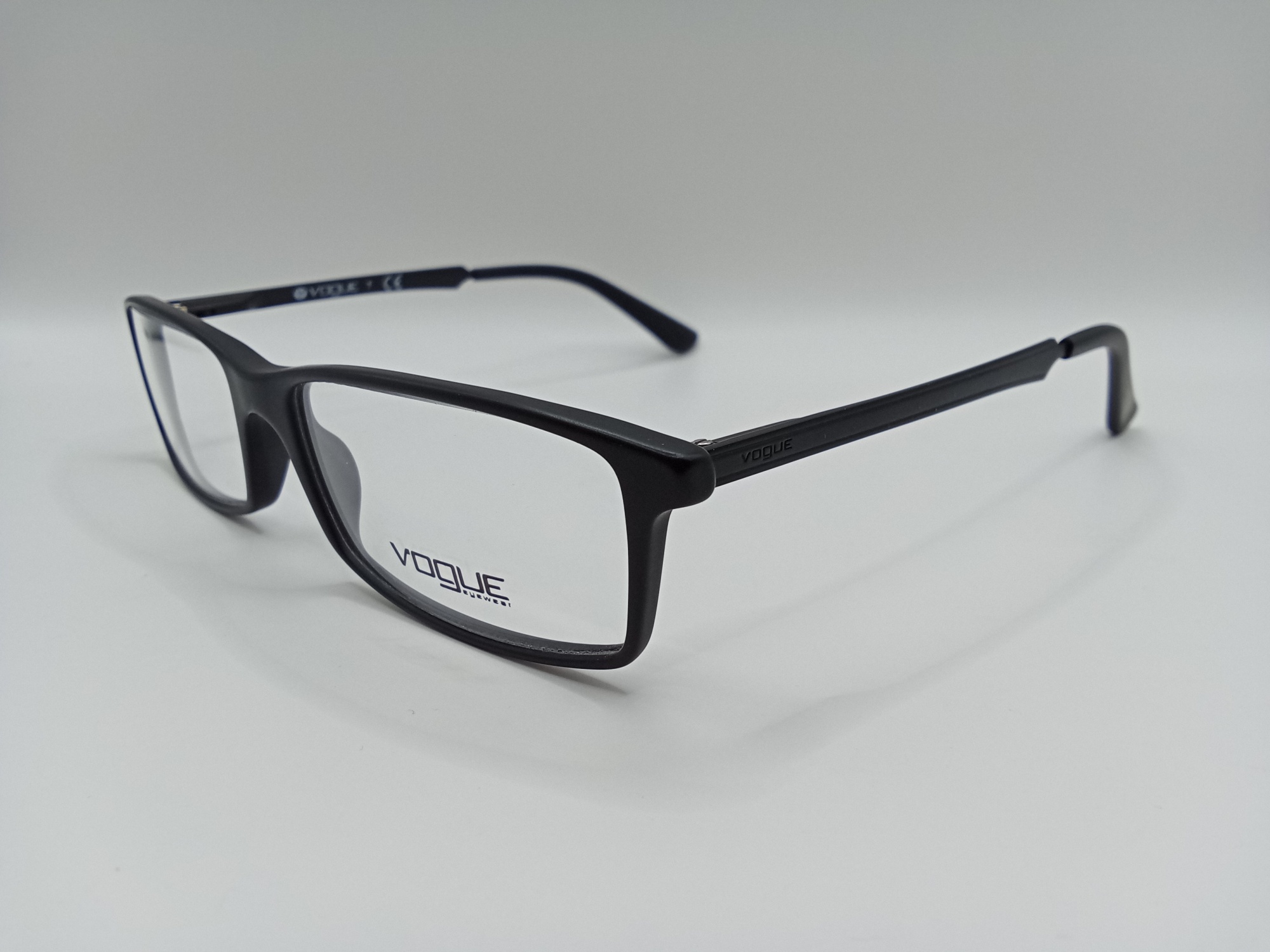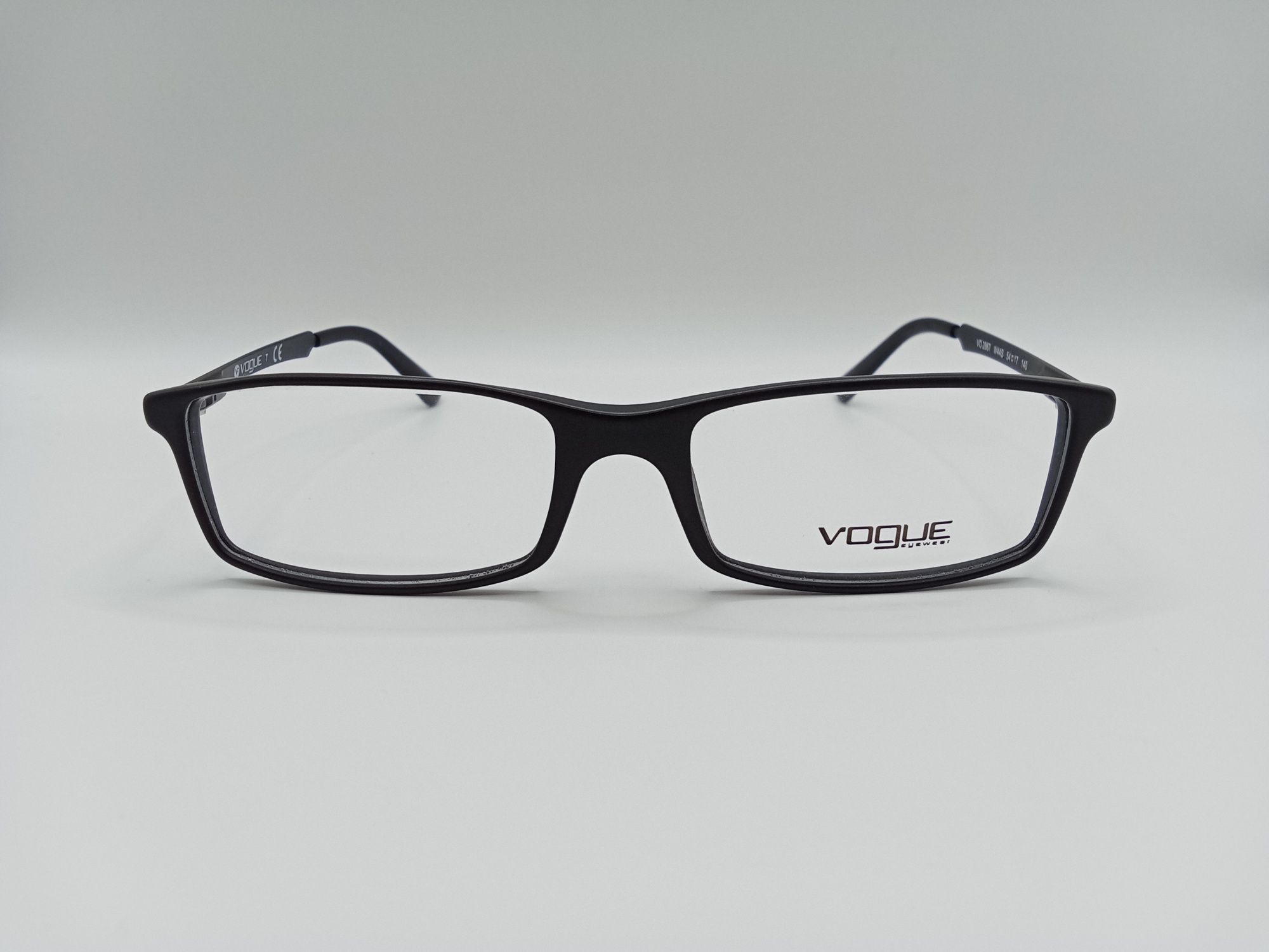 Oprawka Vogue VO 2867 W44S ma prostokątny kształt. Front jest plastikowy, a zauszniki metalowe. Wygodna i trwała oprawa w kolorze czarnym.